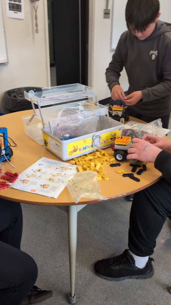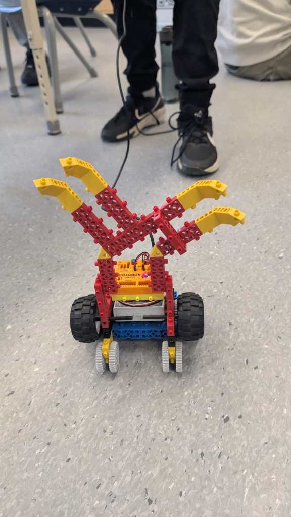 Ms. Webster’s Grade 2 class was enjoying taking part in the Robothink Kamloops exercises led by Zeeshan Nanji who was supporting individual students as well as small groups as they put together their creations using custom bricks, batteries and motorized parts. Two students combined their two creations to make one that had a rotating arm. When they took them apart, one noticed that if it was turned around, it could make a good blender. Another student, Makena, has spent Spring Break at a Demolition Robotics camp and she shared how she “really liked everything about it.” and when I asked her to name one thing, she answered, “I like that I get to build things.”